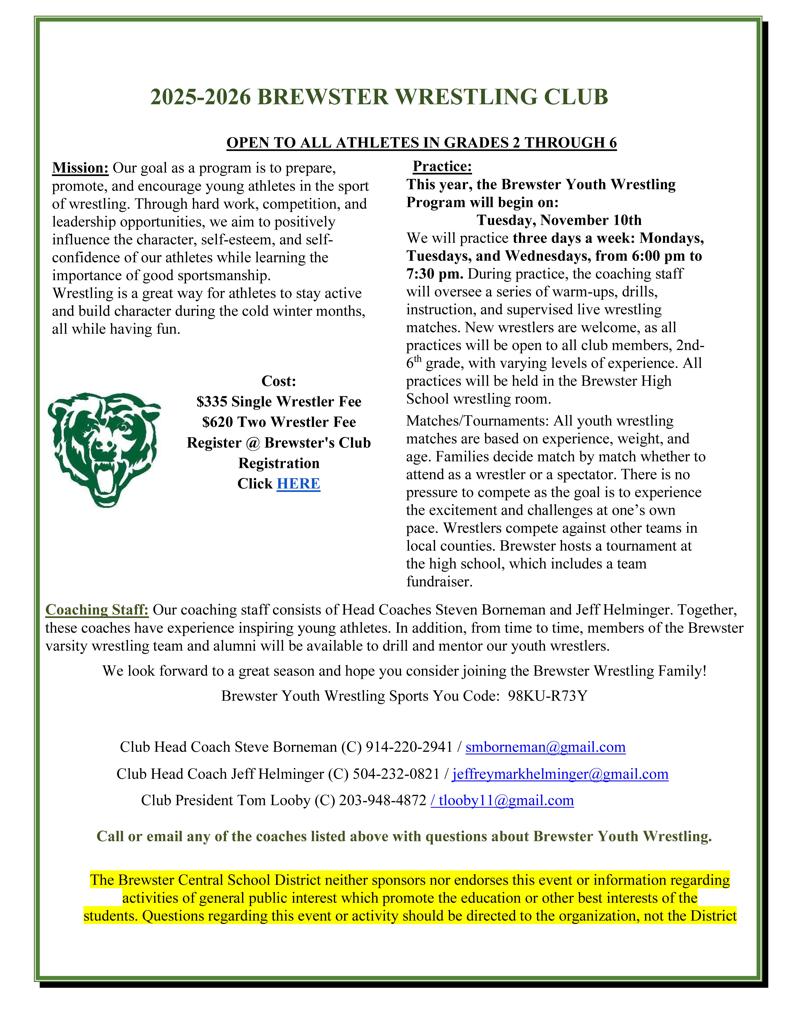 Click on Brewster Wrestling Club Logo to be directed to their Club sign-ups!