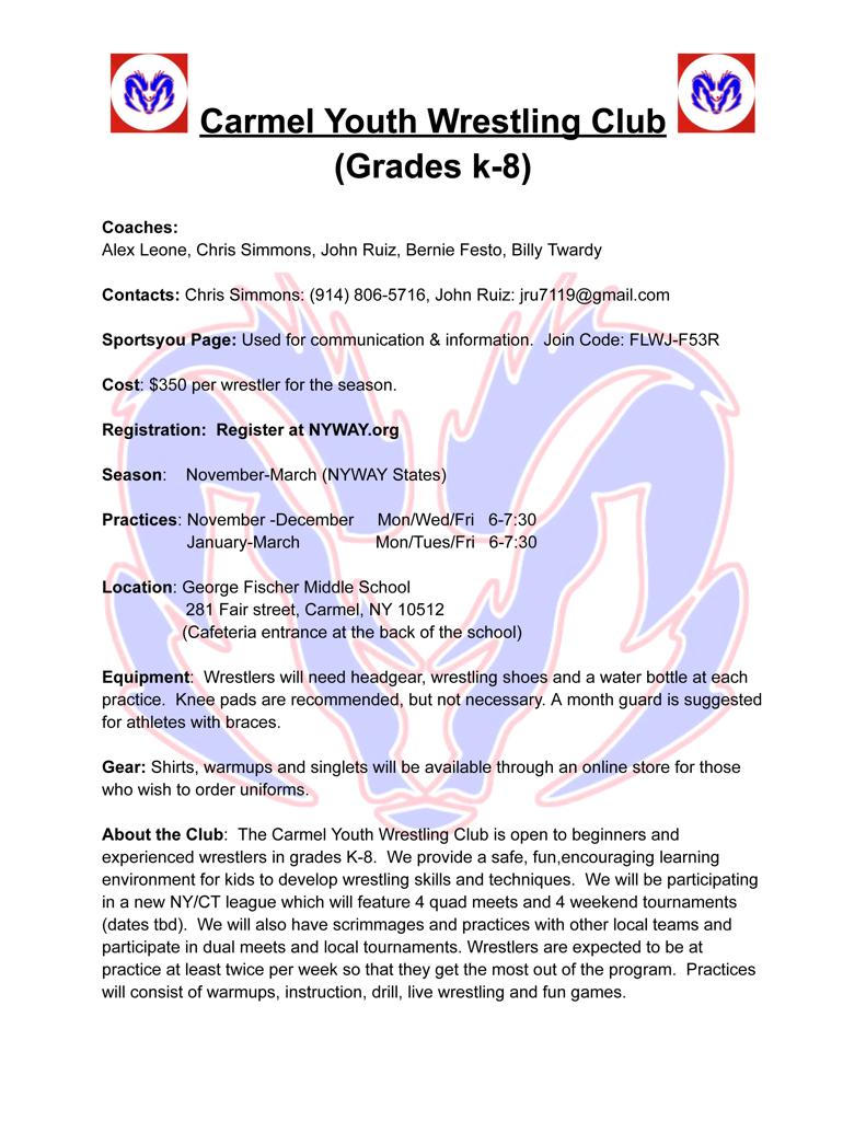 Click on Carmel Youth Wrestling Club Logo to be directed to their Club sign-ups!