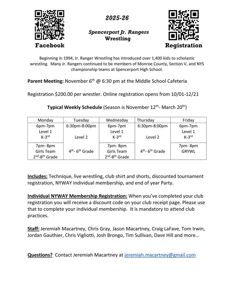 Click on Spencerport Wrestling Club Logo to be directed to their Club sign-ups!
