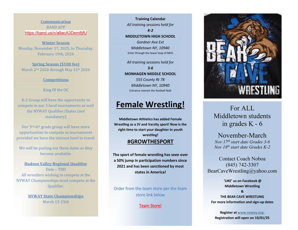 Click on Bear Cave Wrestling Club Logo to be directed to their Club sign-ups!