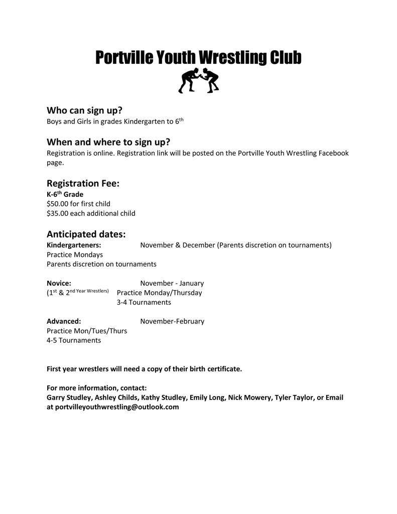 Click on Portville Youth Wrestling Club Logo to be directed to their Club sign-ups!