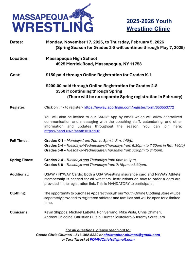 Click on Massapequa Wrestling Club Logo to be directed to their Club sign-ups!