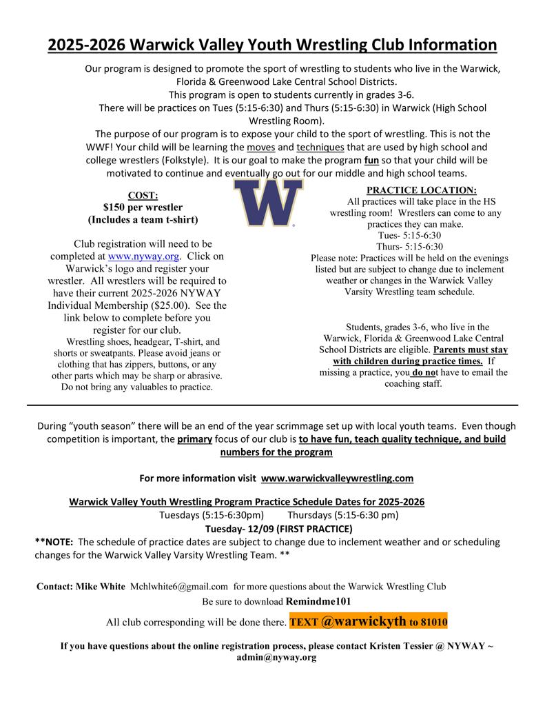 Click on Warwick Wrestling Club Logo to be directed to their Club sign-ups!