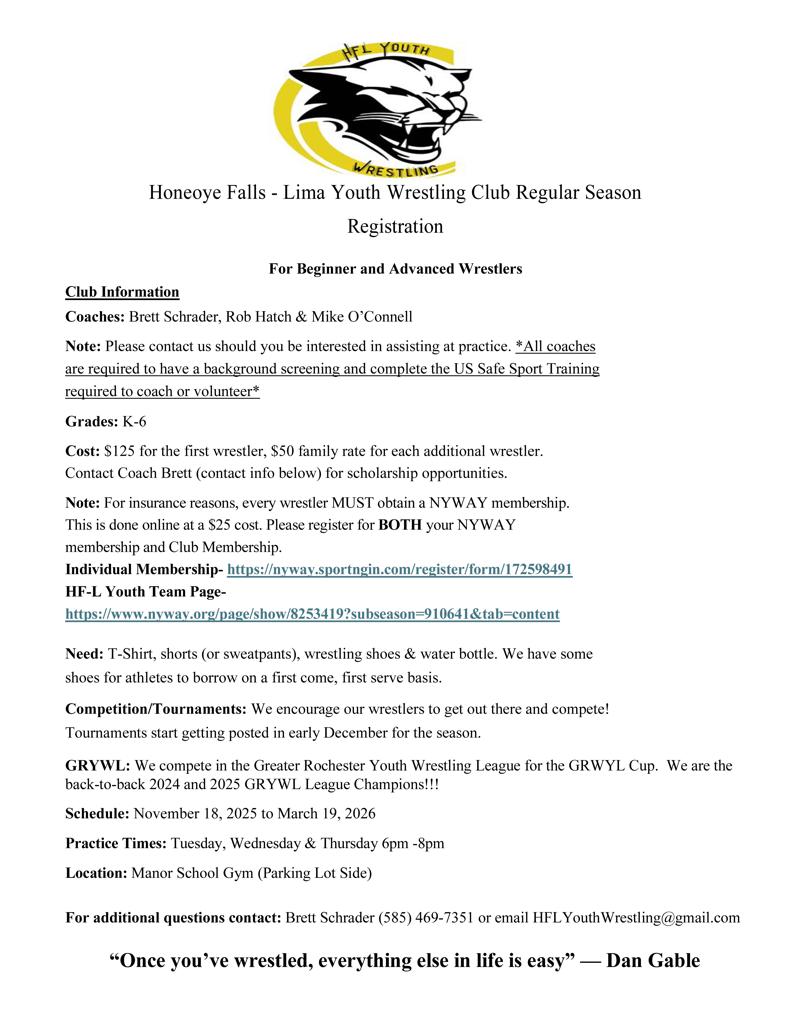 Click on HF-L Youth Wrestling Club Logo to be directed to their Club sign-ups!